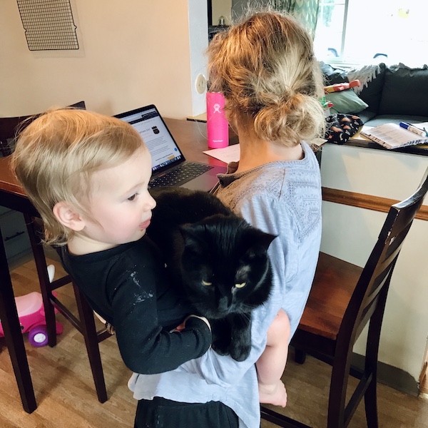 It’s like my life summed up in a photo, haha! We are trying to make the best of the situation and really liking the extra family time!