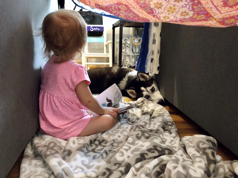 We did important things in it like playing with Sadie’s toy trucks, snuggling, and reading books. She especially loves Biscuit books lately.