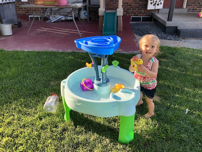 Since we got a water table, I decided it was time to pass on an outdoor toy to make room for this one. I washed up and listed her garden table on Craigslist for free, and I’m excited to be passing it on for another family to enjoy in a few days!