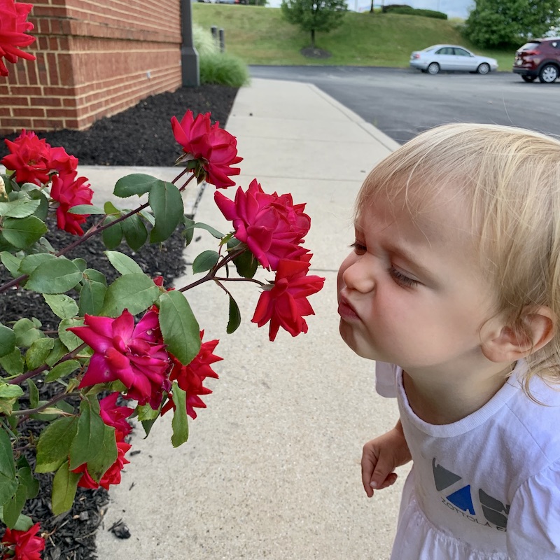 So, so thankful for a night off and that she got some quality time with her grandparents! She got quite the royal treatment, too. They went shopping at Rural King and got to see the little chicks, went out to eat, and even stopped to smell some roses 🙂