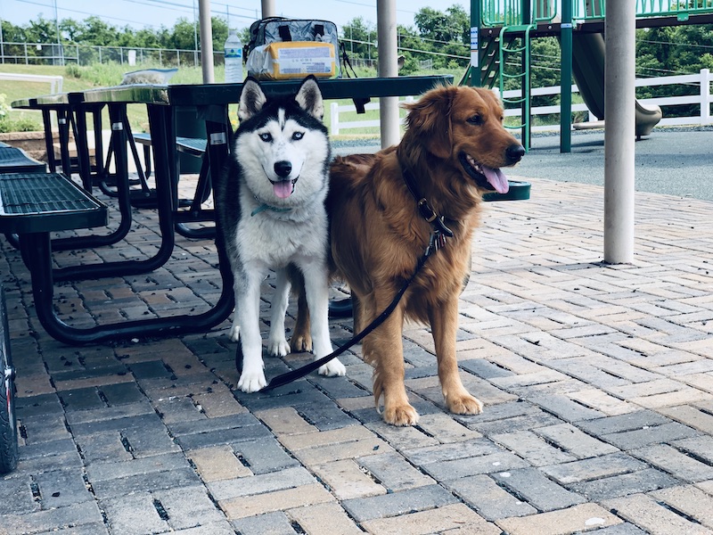 We went to our church’s Youth Summer Days group at a local park today and had a blast. Niva enjoyed time with Indy, my sister’s golden retriever. The moms got to talk and the kids got some energy out. Win-win!