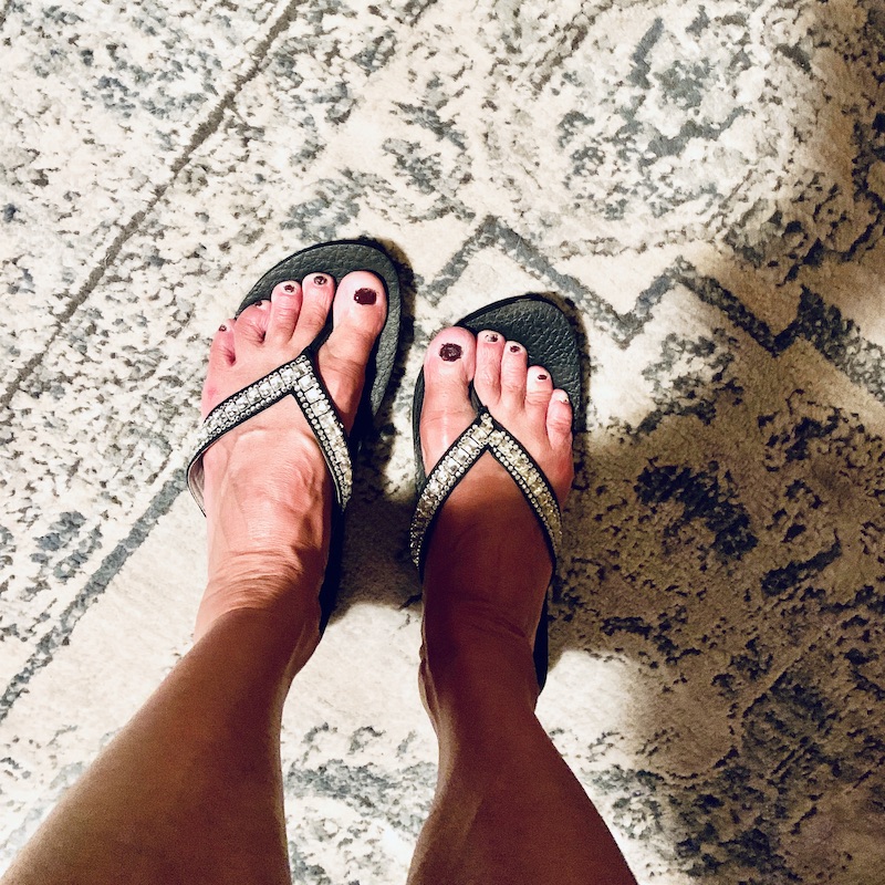 In the evening, my mom helped me teach the toddler class at church and I got to laugh some more. She has two pairs of the same flip flops and left for church in a rush.