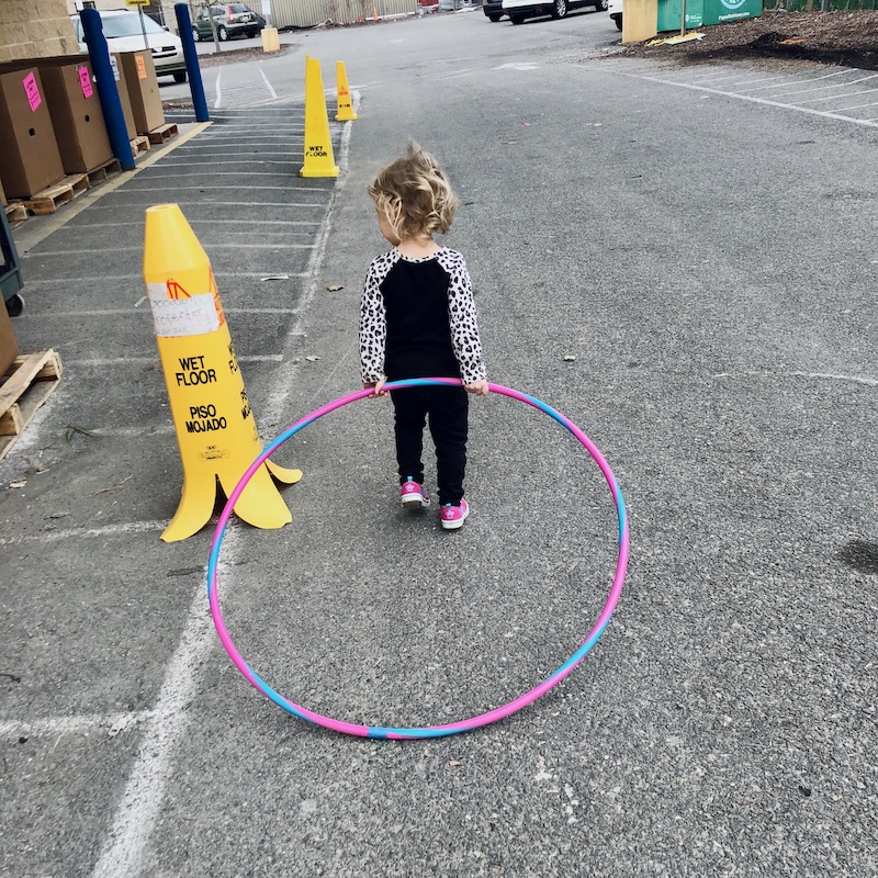 She carried a hula hoop that she found all around Goodwill while I searched through bins of clothes and I couldn’t say no to her. She was so patient and the hula hoop cost 12 cents, haha!