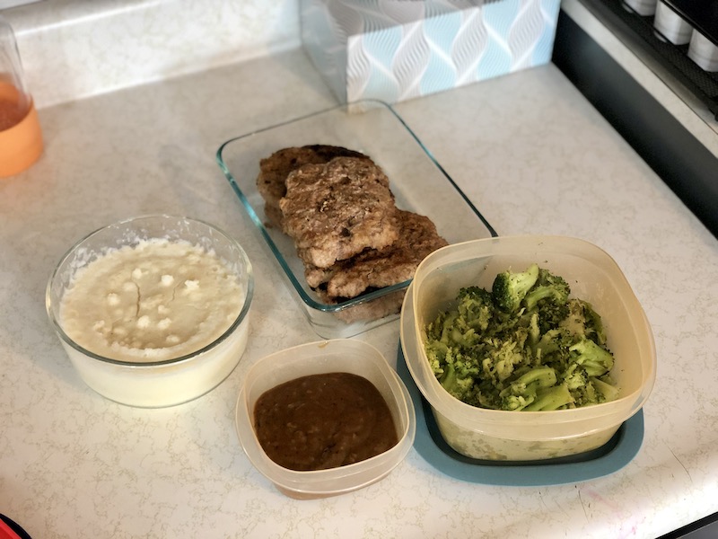 Last but not least, I cooked one of Jimmy’s favorite childhood meals: salisbury steak with gravy, mashed potatoes, and broccoli.