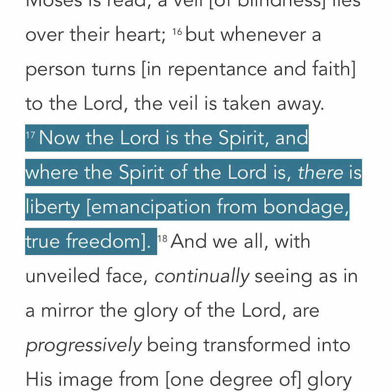 Really loving 2 Corinthians 3:17 in the Amplified version of the Bible!