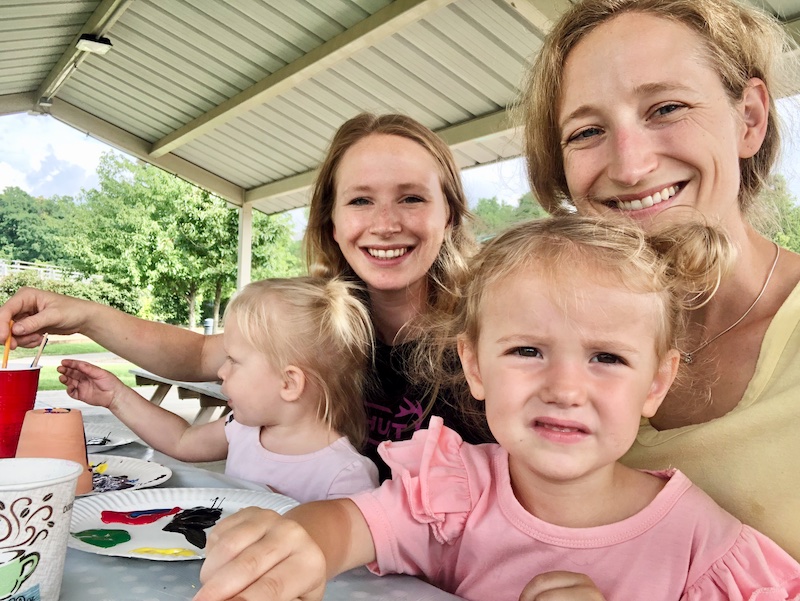 I mentioned in my last post that my sister brought her kids and dog over for the day on Wednesday and promised to blog about it. We had such a fun time! Hannah and I signed Sadie and Caroline up for a plant and paint event at a local park, so the girls painted a flower pot and planted a succulent and got to take it home! I will be cherishing that little pot as long as it lasts at our zoo of a house 😜