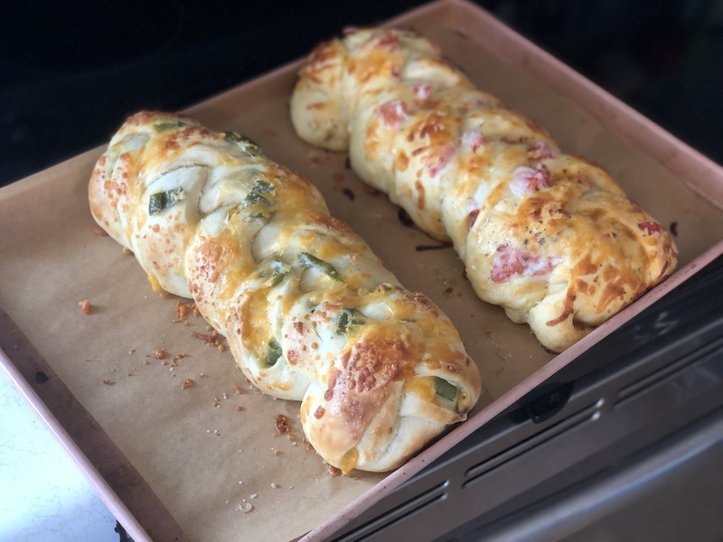 Jalapeno Cheddar and Tomato Basil Mozzarella Challah Bread