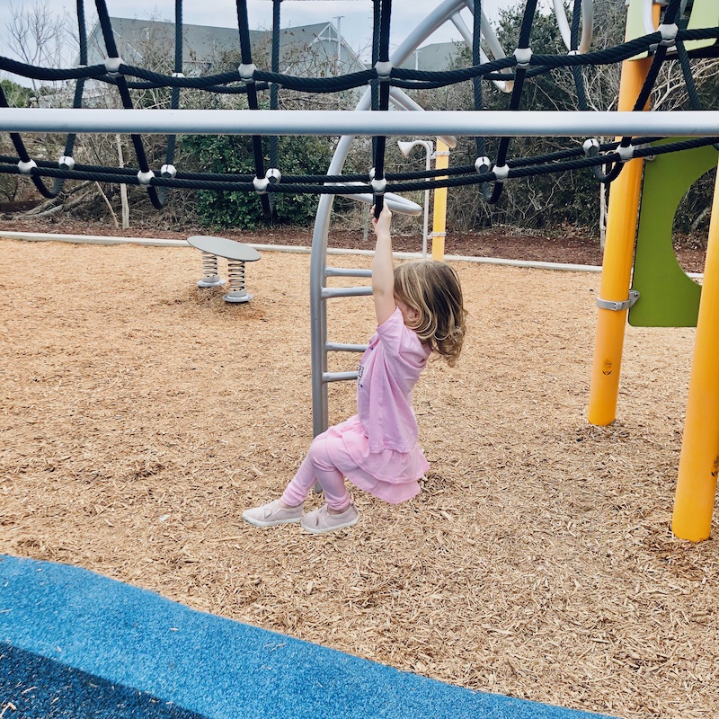 My mom and I took Sadie to our favorite Outer Banks park, Dowdy Park, for an afternoon and she had a blast climbing, running, swinging all over the place.