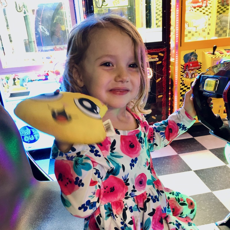 We hung out in the arcade instead and actually won a prize in the claw machine. I feel like that’s usually impossible but we did it together and won on the first try. Definitely a special moment together! She was so happy to just look at all the games and didn’t complain about not being able to bowl.