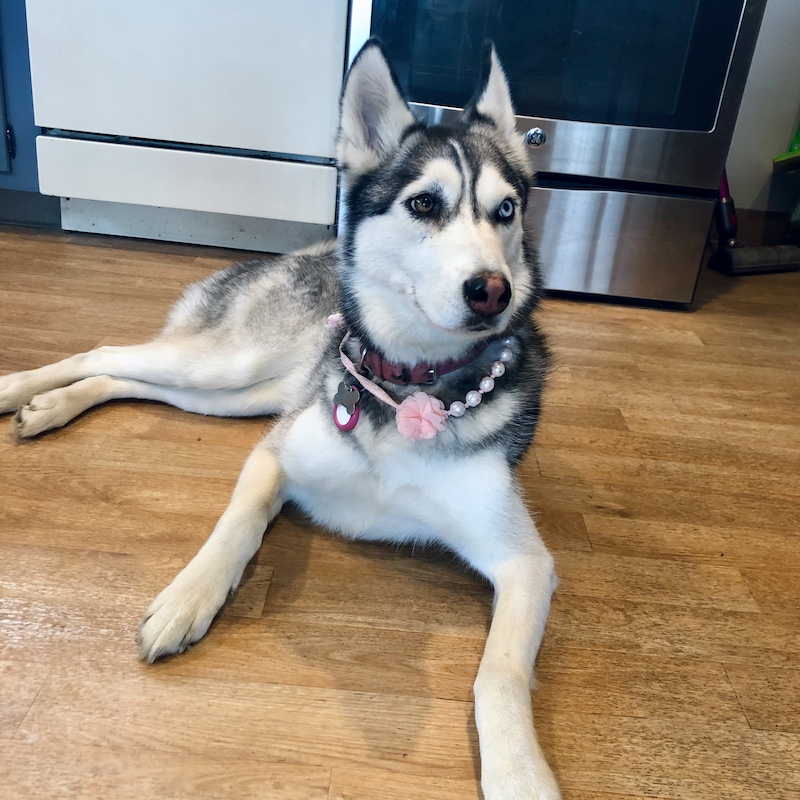 We had some dog playtime this week when we had our husky friend Runah over for the day. Sadie thought Runah needed to accessorize, so she put a necklace on her. She looks downright glamorous!