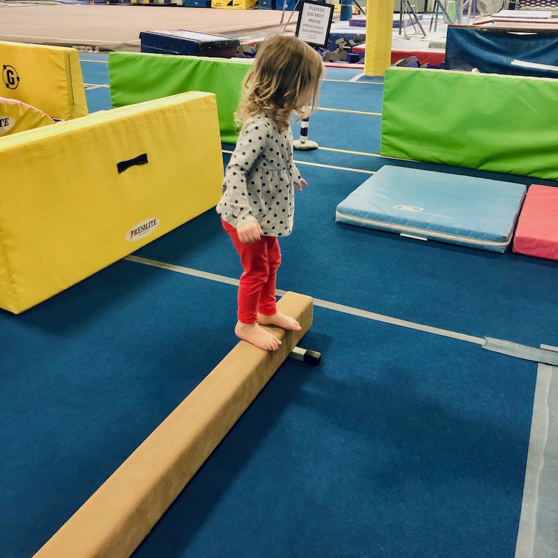 Sadie had a first this week: her first time visiting a gymnastics gym! I signed her up for a drop-in preschool playtime on a whim (like an hour before it started 😂) today and she had a blast!