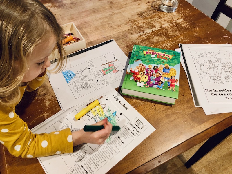 We made sure to get in a Bible lesson about the Israelites crossing the Red Sea at home! I love pulling out this workbook for interactive Bible lessons to do at home!