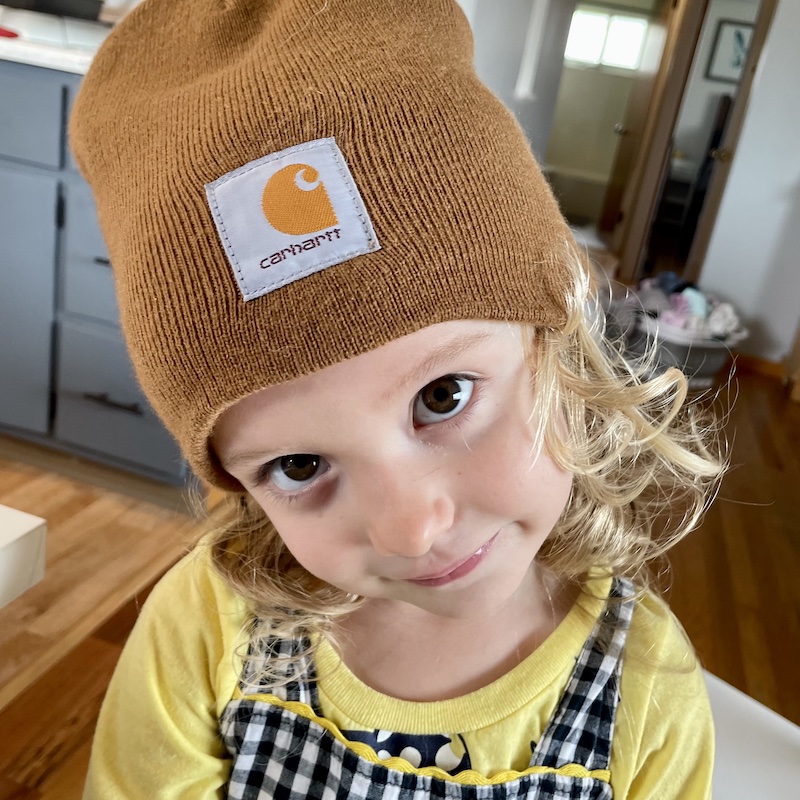 Current cuteness Sadie wearing Jimmy’s hat 😍