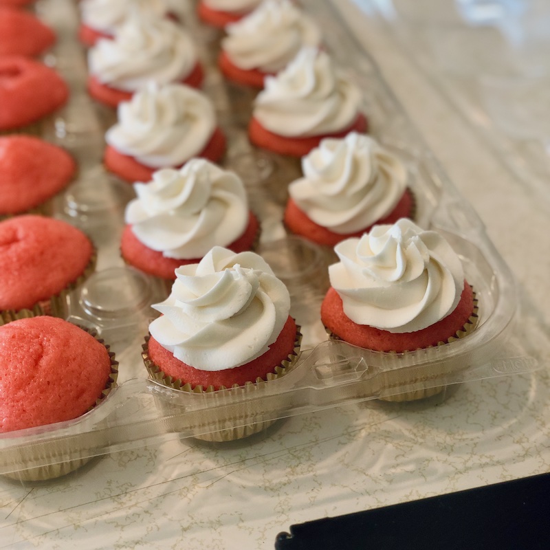 All of the baking for the party went well. I made a whole bunch of chocolate and strawberry cupcakes and frosted them with buttercream.