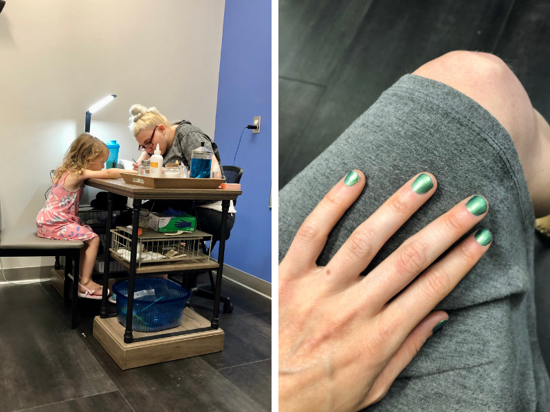 Nail appointment with Sadie. My sister gave me a gift card for a local nail salon for my birthday, so Sadie and I went in to get our nails done together! I love doing things like this with her. Just like last time, she was a very good girl! So proud.