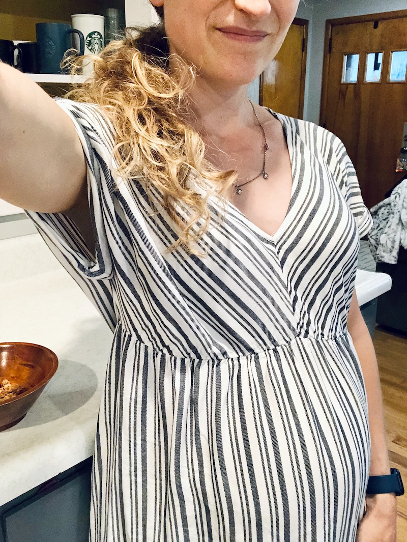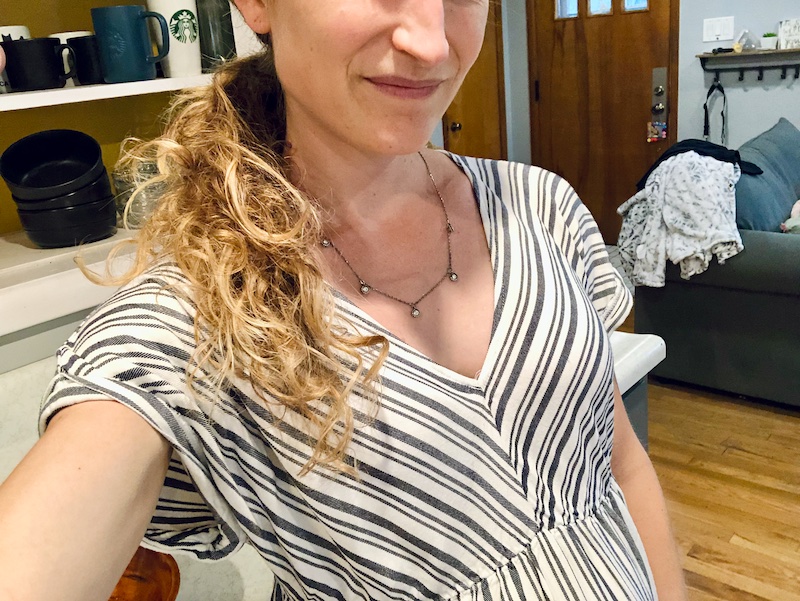 I thrifted a new maternity dress last week and wore it to church yesterday. (Also, I still love my necklace from our trip to Nemacolin 💜)