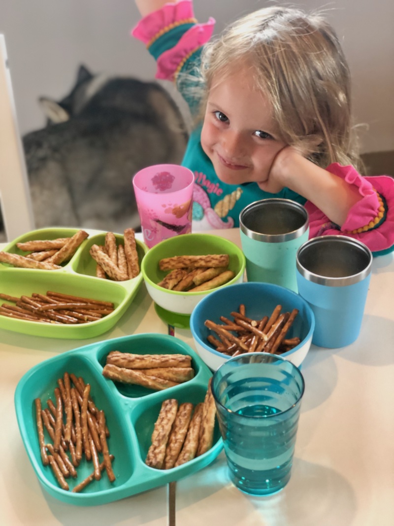 Turns out it was a pretzel picnic! I was impressed with the variety of pretzels she managed to find and thought it was so cute that she set everything up all by herself. We had just settled in for our picnic when we heard the ice cream truck driving by!