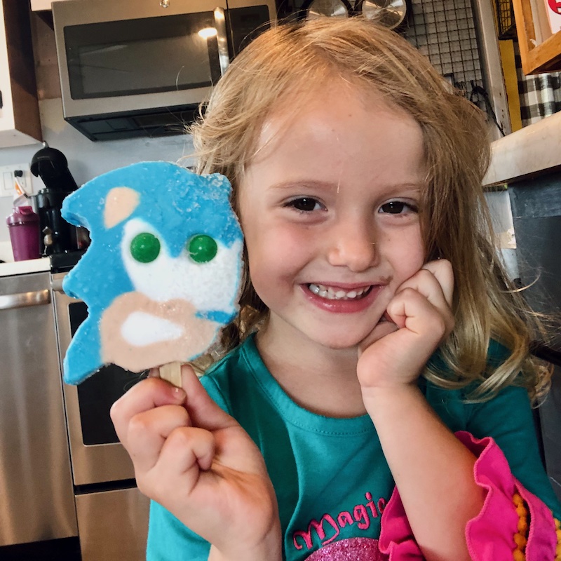 We jumped out of our seats, ran outside, and flagged down the ice cream man! The ice cream truck had Sonic the Hedgehog ice cream and Sadie was overjoyed. Like bouncing up and down, grinning from ear-to-ear happy.