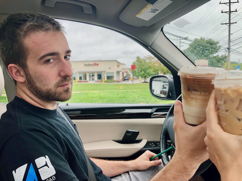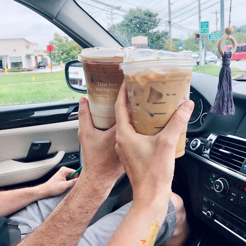 We got out of the house for coffee, a trip to Lowes, and then later on I took Sadie to the mall to play in the kids area so she could get some energy out. Back to the coffee, though. I asked Jimmy to take a “cheers” picture and below is how it came out.