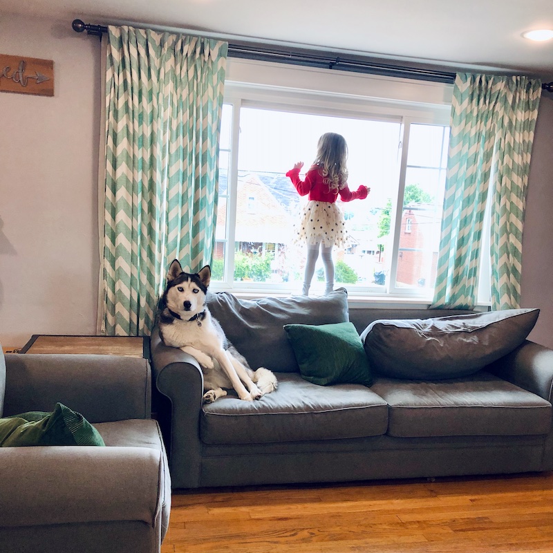 Sadie standing in the window in her tights and Nica sitting like a human is the best pic!