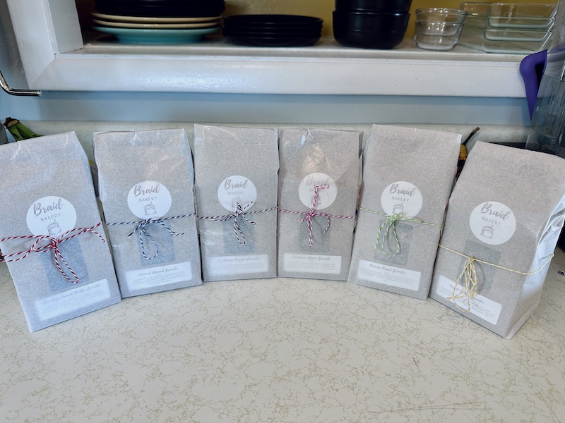 A granola order all packaged up and ready to ship.