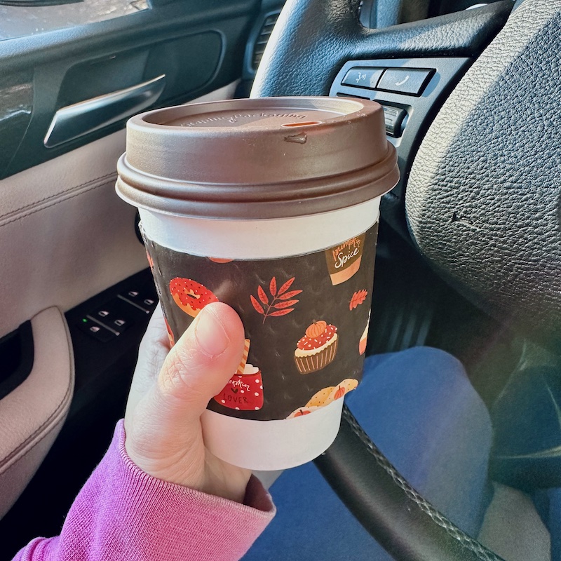 - Coffee. Always and forever! I stopped at a local coffee shop (LaBella Bean if anyone reading lives in Pittsburgh) and got a medium roast coffee that was great.