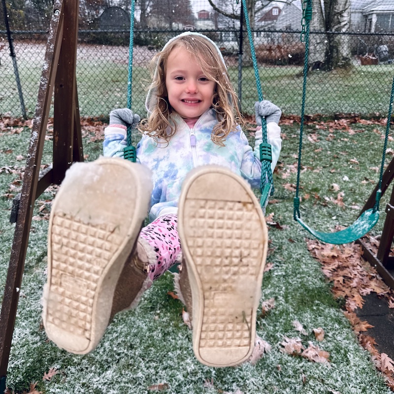 We got our first little snow! Sadie was very excited and Jimmy started checking the radar for any upcoming snow storms and she was intensely curious about what a snow storm is, where it comes from, and how it’s made.