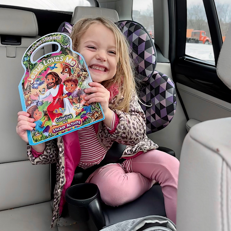 Just a girl and her sticker//coloring book! She was given this for Christmas from our church secretary and it was a big hit!