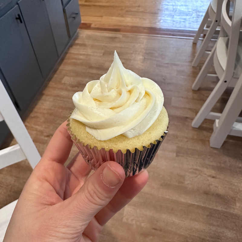 After filling the cupcakes, I frosted them with a basic vanilla buttercream.