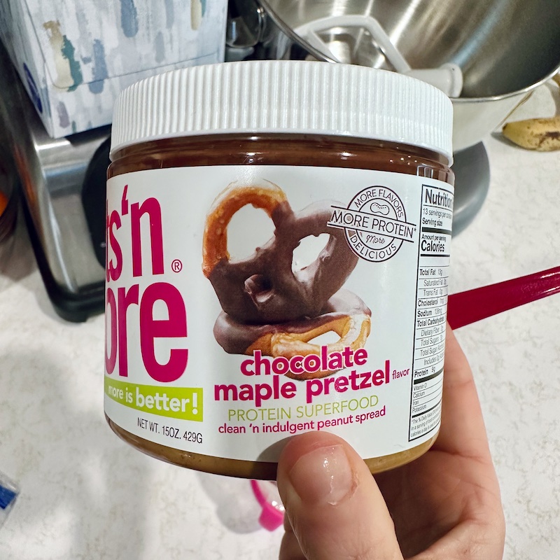 - I’m always trying out different peanut butters. Right now, I’m working through all of Nuts ‘N More’s flavors. I’ve tried the chocolate maple pretzel, wild honey, and toffee crunch flavors. They’re all excellent!