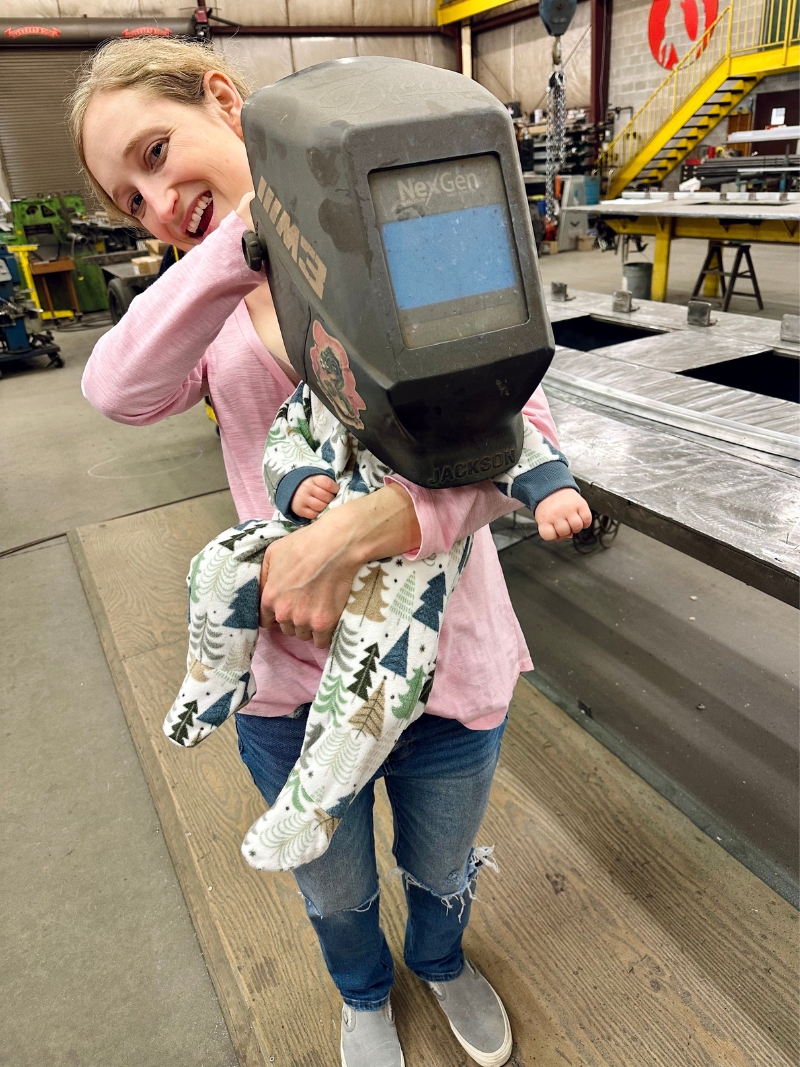 Jimmy had me put his welding hood on Mordecai. I think he’s gunning for him to be a welder in the future 😉