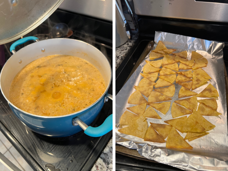 In the meantime I made our chicken tortilla soup and tried making homemade corn tortilla chips for the first time. I didn’t make the corn tortillas homemade, but it’s one step closer than from a bag 😜