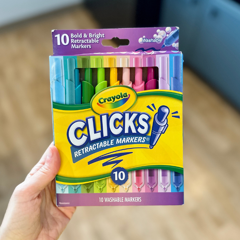 Current kid products Mordecai chows on these snack sticks lately and these retractable markers are a game changer. No more lost caps!