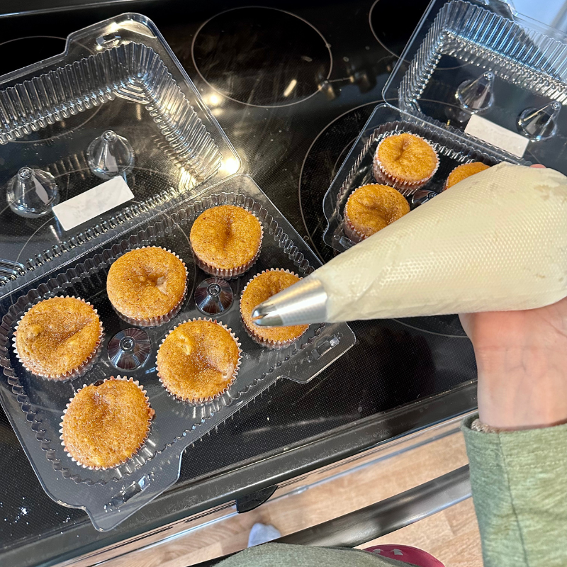 I had an order for pumpkin spice cheesecake cupcakes. They were all ready for me to decorate with cream cheese frosting.