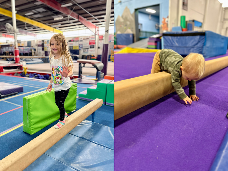I wanted to do something extra fun for the kids to celebrate Mordecai’s big day, so we went to the local gymnastics gym for preschool playtime. It’s just an hour of free play on the gymnastic equipment and the perfect way for kids to get their wiggles out and do kid things!