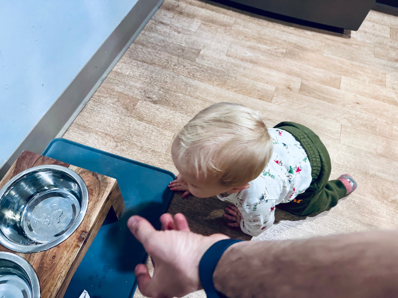 Sadie loves using the camera on my phone. She had it last night and took this picture, aka the most “us” picture ever. Mordecai crawling towards Niva’s water dish while Jimmy frantically tries to grab it 😂