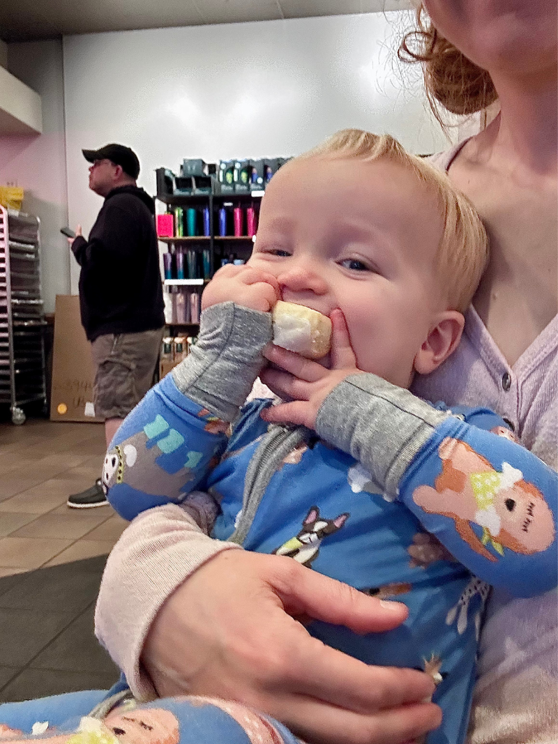 This boy loves a good scone! Actually, he likes just about any food. Sometimes we get a scone at Starbucks and sometimes we get the bacon egg bites. I love that two egg bites come in a pack because the kids each get one.