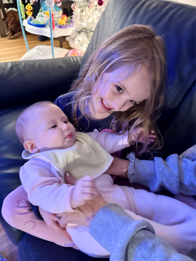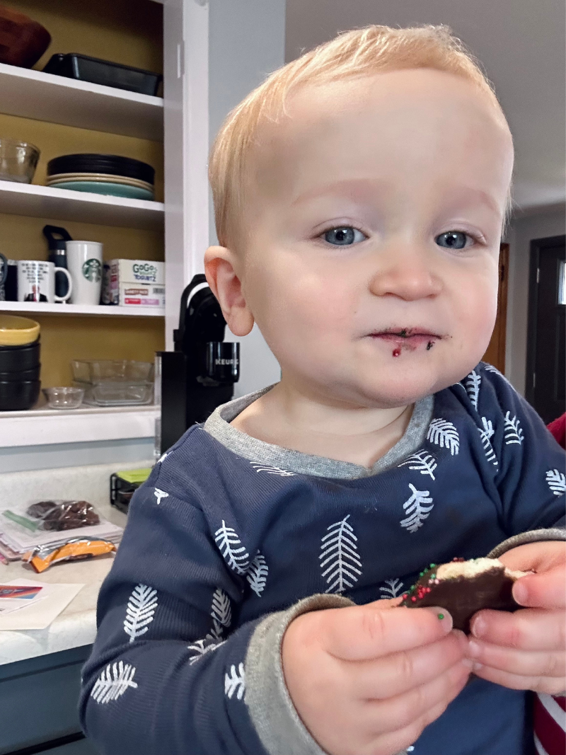 Sister and baby brother opening gifts by Christmas tree with parents sitting nearbyGuy sitting on couch with Siberian huskyDad and daughter in mermaid tail blanketGirl and baby brother looking out storm door in matching pajamasBaby boy eating a cookieBreakfast for dinnerSiberian husky laying head on pillow on couchGirl with Christmas cookieChristmas chocolate covered OreosFamily photo by Christmas tree with mom, dad, girl, and baby boyGirl singing at churchMom with baby boy wearing redGirl sitting on floor opening Christmas giftsBaby boy holding Christmas giftGrandparents and dad with grandkidsFamily photo in front of Christmas tree with mom, dad, girl, and babyBaby boy pushing fire truck walkerOne year old baby boys playing togetherGirl holding baby girlHappy birthday Jesus cakeBig sister pushing baby brother in firetruck baby walker toy