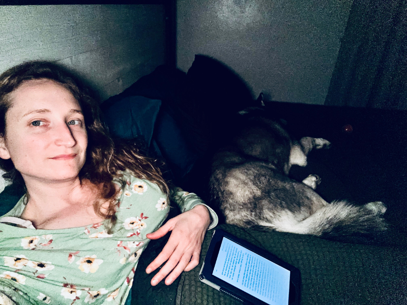 Miss Niva has been getting into the habit of laying in bed with me while I read. Shhh, don’t tell Jimmy! He has a strict no dogs on the bed rule.
