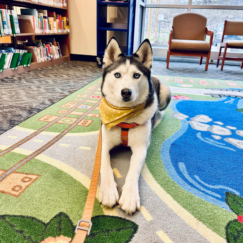 Husky therapy dog at the library