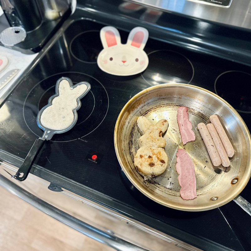 Backing up to early that morning, we had a leisurely breakfast of bunny-shaped pancakes, bacon, sausage, and fruit.