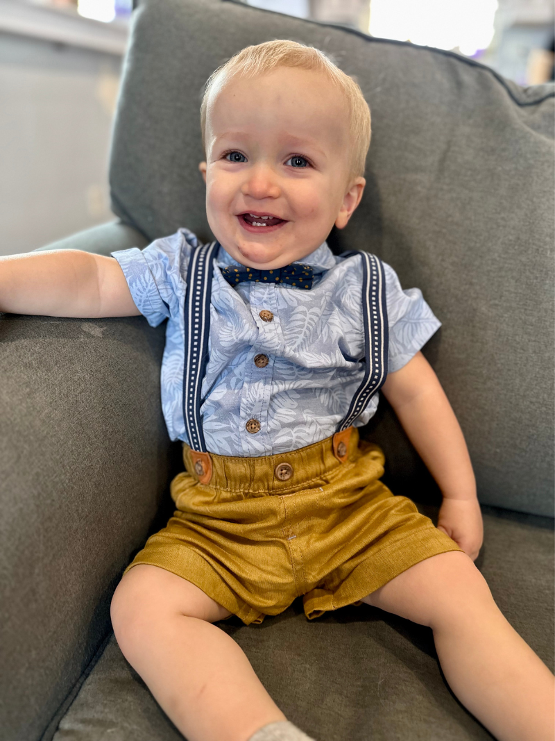 This little guy fell off of our kitchen table after I took these pictures. He got a nice little bruise from that. There has been such a difference for us between having a boy and a girl. When Sadie was this age, I think she got a bruise on her head once?! He gets one like once a day 😳