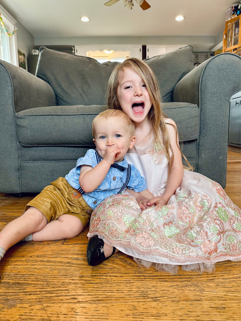 Mordecai wore the outfit I got him in this post and it was adorable! Sadie sported a new dress from my mom. Thanks, mom!!