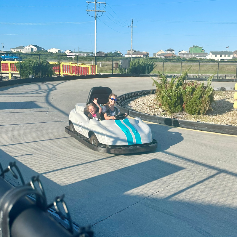 In the afternoon, us girls visited some local shops and then we all ordered pizza and went to Paradise Fun Park in Kill Devil Hills. First, Sadie and I raced Jimmy on go karts. Unsurprisingly, us girls lost 😆