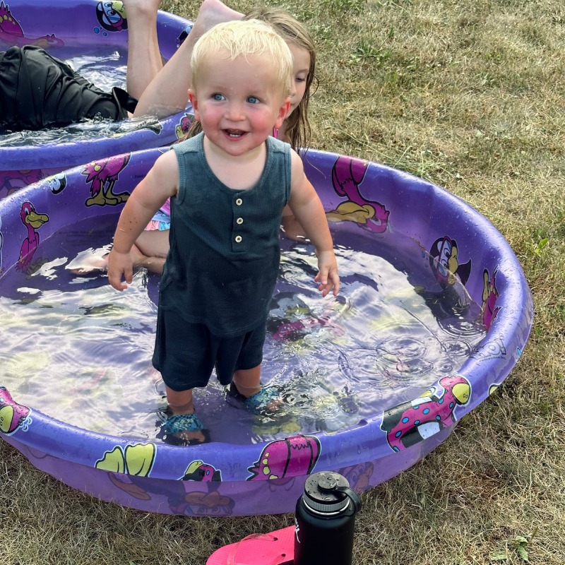 It was still in the 90s on Saturday, so in the evening we set up a slip ‘n slide for the kids. They both played on it for quite a while, which allowed me to fold laundry and do some real estate work. It was a busy day!