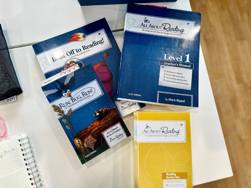 Reading is a big one for us this year! We’ve been working so hard on this subject. Sadie is reading three and four letter words and we want to keep building on her skills. We started All About Reading Level 1 over the summer and it has been a good fit for us.