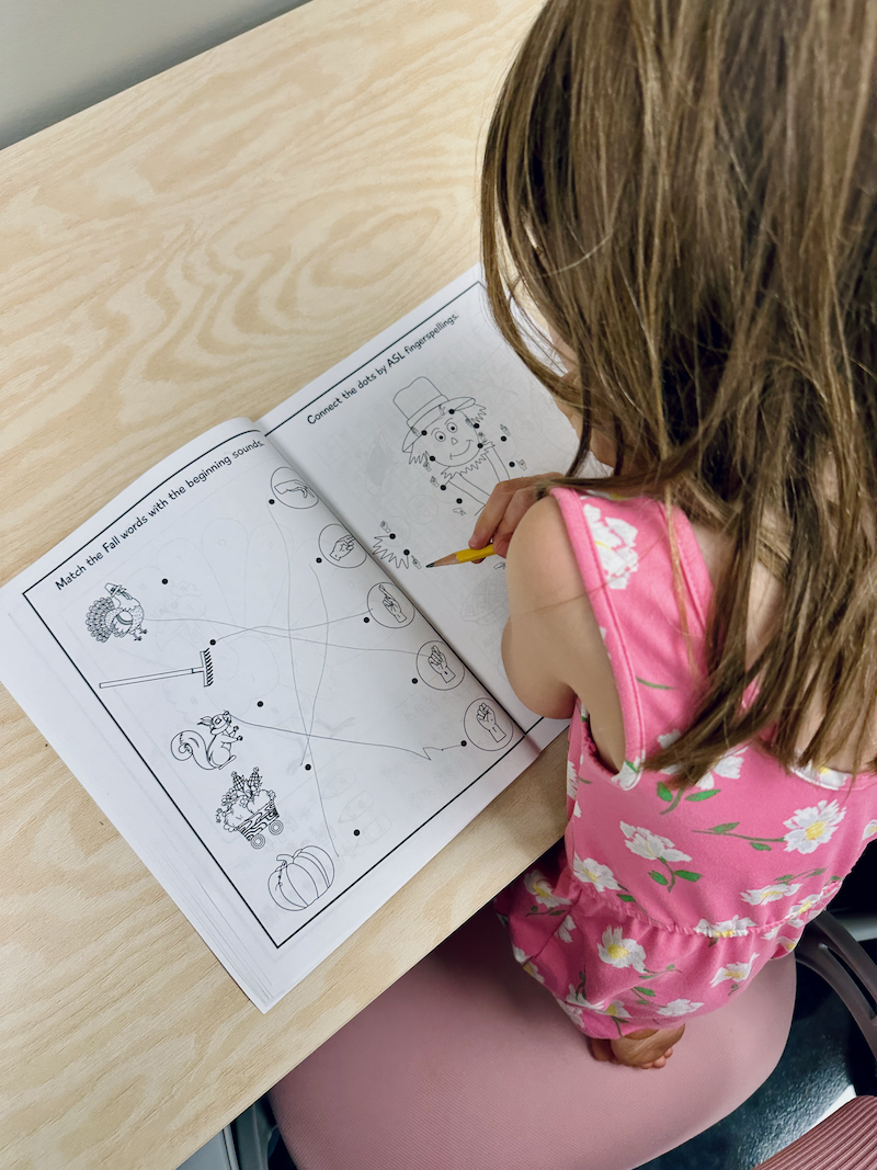 We are using and loving our homeschool room! Sadie finished up her last sign language workbook on the alphabet, so we moved on to one that’s fall-themed. Love it! She was so excited to do a color by number turkey picture that we hung it up. Right next to Mordecai’s adorable scribbles.