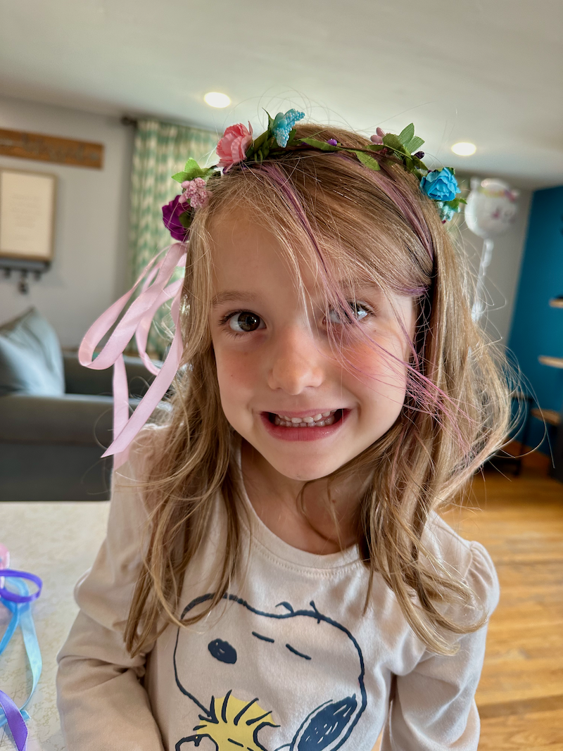 After we got wax all over the counters, we moved onto flower crowns! We’ve tried to make them with fresh flowers in the past, but having a kit was much easier and cuter.