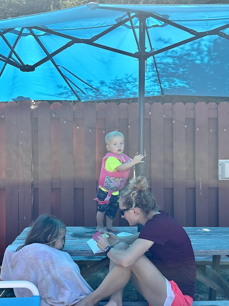 And then the pool! We also snuck in some schoolwork by the pool because why not?! Also… this is what it’s like to homeschool with a toddler running around 😉