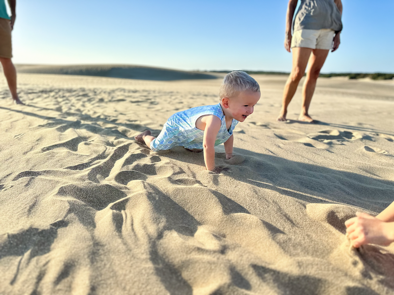 After our fill of hush puppies and fish, we went to Jockey’s Ridge State Park in Nags Head. The sand dunes there are always shifting, so the park always looks different. The kids enjoyed romping around in the smooth sand!